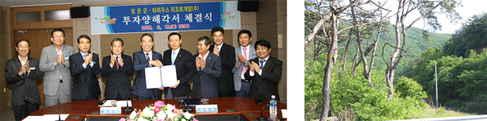 보은군청 휴양밸리계 강재구 계장은 “이번 투자양해각서는 정상혁 군수가 속리산의 수학여행 1번지 옛 영광을 재현하기 위해 작년 4월 종곡터널 좌우 253ha의 사유림을 구입하고 등기이전 완료하는 등 꾸준히 투자자를 찾고 접촉과 면담을 통해 유치활동을 펼친 점이 주효했다”고 밝혔다.