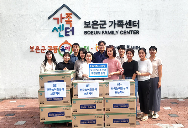 한국농어촌공사 보은지사(지사장 석월애)는 추석 명절을 앞둔 지난 9월 24일 보은군 가족지원센터를 방문해 후원 물품을 전달하며 따뜻한 정을 나누었다. 보은군 가족지원센터는 지역 내 취약계층 가정과 아동을 지원하는 기관으로 한부모 다문화 가정뿐 아니라 1인가정, 청년세대 등 다양한 형태의 가정을 대상으로 자녀교육 지원, 가족상담, 돌좀 서비스, 프로그램 운영 등을 통해 건강하고 안정된 가정생활을 돕고 있다. 보은지사는 지역 내 가정들이 경제적인 어려움 없이 다 함께 풍성한 추석을 보낼 수 있기를 바라는 마음을 담아 준비했다고 했다. 석월애 보은지사장은 “공사가 지역사회의 일원으로서 따뜻한 관심을 지속적으로 이어가고 가족지원센터를 통해 도움이 필요한 가정에 실질적인 지원이 닿을 수 있기를 바란다”며 “앞으로도 여러 형태의 가족이 행복한 생활을 이어갈 수 있도록 최선을 다하겠다”고 밝혔다.