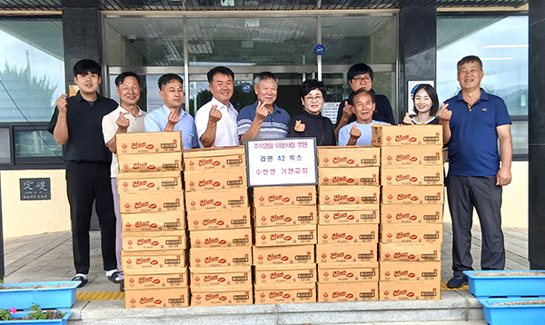 수한면 거현교회(담임목사 곽노형)는 지난 9월 26일 수한면 행정복지센터를 방문해 추석 명절을 맞아 어려운 이웃들에게 전달해 달라며 라면 42상자를 기탁했다. 거현교회는 2010년부터 매년 라면, 쌀 등 생필품을 기탁하며 지역사회에 따뜻한 나눔을 이어오고 있다. 곽노형 목사는 “작은 정성이지만 도움이 필요한 이웃들에게 조금이나마 보탬이 되길 바라며, 앞으로도 나눔을 꾸준히 실천해 나가겠다”고 전했다. 정진석 수한면장은 “10년이 넘는 세월 동안 변함없이 이웃사랑을 실천해 오신 곽노형 목사님과 거현교회에 깊이 감사드린다”며 “이번에 기탁해 주신 물품이 추석을 맞아 도움이 필요한 가정에 따뜻한 희망이 되기를 바란다”고 말했다. 후원받은 라면은 명절 전 각 마을 이장을 통해 형편이 어려운 가정에 전달할 예정이다.
