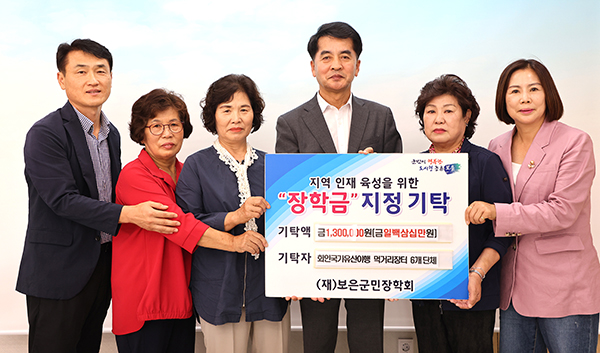 회인국가유산야행 먹거리장터 6개 단체는 지난 21일 보은군청을 방문해 지역 인재 육성을 위해 (재)보은군민장학회에 장학금 130만 원을 지정 기탁했다. 이번 장학금은 지난 9월 회인면에서 열린 ‘회인국가유산야행’ 기간 동안 먹거리장터를 운영한 단체들이 마련한 수익금으로, 지역 학생들의 학업 지원과 교육 발전을 위해 뜻을 모아 전달됐다. 먹거리장터 참여 단체를 대표해 이해숙 주민자치위원장은 “지역에서 얻은 수익을 다시 지역 청소년들에게 돌려주는 선순환이 되기를 바란다”며 “앞으로도 지역 발전과 인재 육성에 지속적으로 동참하겠다”고 전했다. 최재형 이사장이지 보은군수는 “지역의 미래를 위해 따뜻한 나눔을 실천해 주신 단체 관계자분들께 깊은 감사를 드린다”며 “기탁해 주신 정성이 지역 학생들이 꿈을 향해 나아갈 수 있는 든든한 밑거름이 될 것”이라고 말했다.