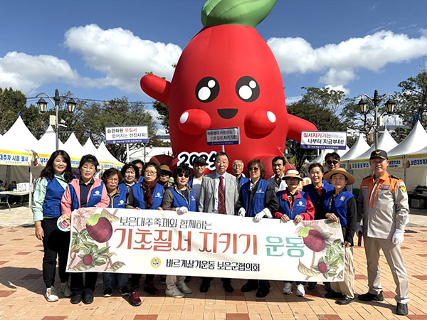 보은군 전역이 2025 보은대추축제 열기가 가득한 가운데 바르게살기운동보은군협의회(회장 이문섭)가 지난 17일 뱃들공원 일원에서 ‘기초질서 지키기 운동’ 캠페인 전개로 분위기를 더욱 고조시켰다.
