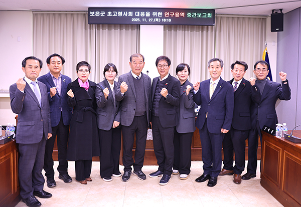 보은군의회 의원 연구단체인 ‘보은군 초고령사회 대응전략 연구회’가 지난 11월 27일 보은군의회 위원회 회의실에서 ‘보은군 초고령사회 대응을 위한 연구용역 중간보고회’를 개최했다고 밝혔다. 보은군 초고령사회 대응전략 연구회는 최부림 대표의원을 비롯한 5명의 보은군의회 의원으로 구성된 연구단체다. 이날 중간보고회에서는 보은군의회 의원들과 연구 수행기관 관계자가 참석하여 그동안의 연구 추진 현황과 분석 결과를 공유하고, 향후 정책 방향에 대한 논의가 진행됐다. 이번 중간보고회에서는 읍면별 현장 의견수렴 결과, 타 지자체 우수사례 조사 등을 기반으로 한 중간 성과가 제시되고 더 나은 복지서비스를 위한 토론이 이뤄졌다, 최부림 대표의원은 “초고령사회 상황속에서 보다 현실적이고 실행력 있는 복지정책 마련이 중요하다”며 “보은군 실정에 맞는 대응전략이 도출되기를 기대한다”고 밝혔다.