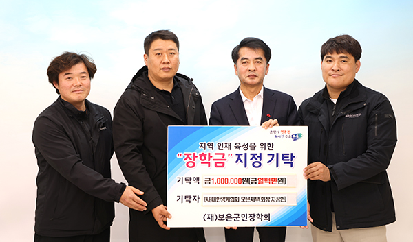 사단법인 대한양계협회 보은지부(회장 차정현) 회원들은 지난 5일 보은군청을 방문해 지역 인재 육성 장학금 100만원을 보은군민장학회에 기탁했다. 사진 좌측부터 안희원 회원, 차정현 회장, 최재형 군수, 유태현 총무 대한양계협회 보은지부회. 이번 장학금은 보은 지역 청소년들의 학업 의지를 북돋우고 교육 격차 해소에 보탬이 되고자 보은지부 회원들이 뜻을 모아 마련한 것이라고 한다. 차정현 회장은 “지역 농업을 이끌어 갈 젊은 인재들이 꿈을 잃지 않고 마음껏 도전할 수 있도록 작은 보탬이 되고 싶었다”며 “앞으로도 지역사회와 함께하는 상생 활동을 이어가겠다”고 말했다. 최재형 이사장은 “어려운 여건 속에서도 지역 인재를 위해 후원해 주신 정성에 깊은 감사를 드린다”며 “장학기금이 학생들의 미래를 밝히는 데 소중히 쓰이도록 하겠다”고 화답했다.