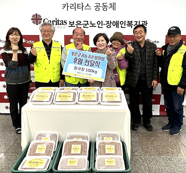 보은군귀농귀촌협의회(연합회장 김재윤)는 지난 16일 보은군노인장애인복지관(관장 박종분)에 정성껏 만든 청국장 100kg을 전달했다. 이번 후원은 올해 상반기에 고추장 100kg에 이어 두 번째로 진행된 후원으로, 협의회 소속 회원들이 직접 담근 수제 청국장으로, 건강과 맛을 동시에 고려해 정성껏 준비했다. 보은군귀농귀촌협의회는 귀농귀촌인이 지역사회의 일원으로서 함께 살아가기 위한 다양한 활동을 꾸준히 전개하고 있다. 이번 후원 또한 단순한 물품 전달이 아니라, 상생과 나눔의 가치를 실현하는 실천적 활동으로 의미를 더했다. 김재윤 회장은 “정성껏 담근 청국장을 어르신들과 장애인분들께 나눌 수 있어 기쁘다. 작은 정성이지만, 이 청국장에 담긴 따뜻한 마음이 식탁 위의 행복으로 이어지길 바란다”고 말했다. 박종분 관장은 “이번 후원은 단순한 식재료 전달을 넘어, 지역과 복지관이 함께 만들어가는 따뜻한 돌봄의 실천이다. 보은군귀농귀촌협의회가 보내주신 청국장은 어르신들과 장애인분들의 식탁에 활력을 더할 뿐 아니라, 정서적인 위로와 공동체의 온기를 전달할 수 있을 것 같다”고 전했다.