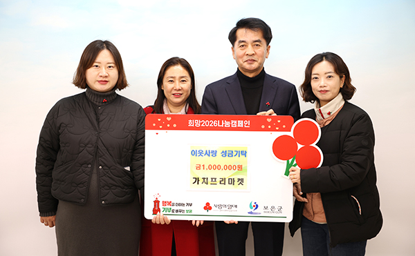 보은군 내 젊은 소상공인과 청년 농부들이 모인 단체 가치프리마켓(대표 이승연)은 23일 보은군청을 방문해 이웃돕기 성금 100만 원을 기탁했다. 이번 성금은 지역 안에서 활동하는 젊은 창업인과 농업인들이 뜻을 모아 마련한 것으로, 지역사회와 함께 나눔의 가치를 실천하고자 하는 취지에서 추진됐고 한다. 이승연 대표는 “큰 금액은 아니지만, 이웃과 따뜻한 마음을 나누고 싶어 기탁하게 됐다”며 “추운 겨울일수록 함께 나누면 더 큰 행복을 전할 수 있어 작은 정성이지만 도움이 되기를 바라는 마음을 담았다”고 말했다. 최재형 군수는 “지역에서 열심히 땀 흘리며 활동하고 있는 젊은 소상공인과 농부들이 이웃을 위해 마음을 모아주셔서 더욱 뜻깊다”며 “이러한 나눔이 지역사회를 더욱 따뜻하게 만들고, 보은의 건강한 공동체 문화를 이어가는 힘이 될 것”이라고 감사의 뜻을 전했다. 한편, 가치프리마켓은 군내 젊은 소상공인과 청년 농부들이 주축이 돼 지역 농특산물과 수공예품 등을 소개·판매하며 지역경제 활성화와 상생을 도모하는 단체로, 앞으로도 다양한 활동을 통해 지역과 함께하는 행보를 이어갈 계획이다. 위 사진 좌측부터 김지혜 분과장, 이승연 대표, 최재형 보은군수. 최효정 사무국장 가치프리마켓.