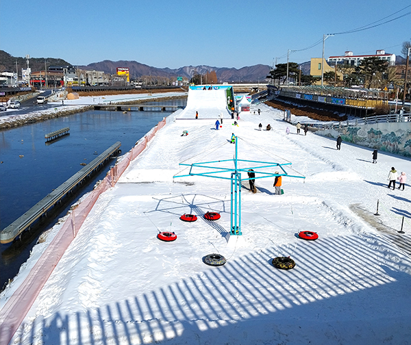 공휴일임에도 추운 날씨 탓인지 보청천 하상주차장에 조성된 눈썰매장의 인기가 예전만 못해 보인다. 11일 오전 11시 찰칵.