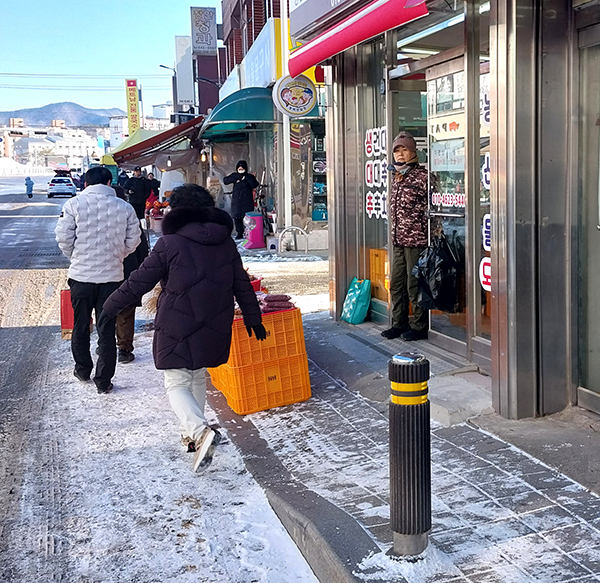 가뜩이나 좋은 인도인데. 사람들이 길거리 내놓은 물건을 피해 차도로 걷고 있다. 11일 오전.
