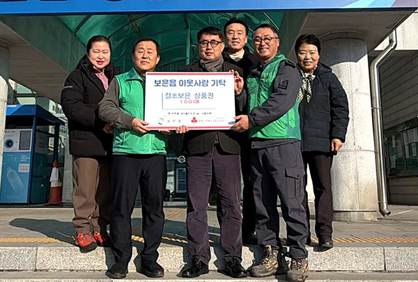보은읍 새마을지도자남녀협의회(회장 김중태, 이은숙)에서 지난 21일 보은읍 행정복지센터를 방문해 보은 읍내에 도움이 필요한 이웃들에게 전달해 달라며 결초보은 상품권 100매(100만원 상당)를 기탁했다. 김중태 회장은 “지역의 어려운 이웃들이 조금이나마 따뜻한 겨울을 보내시길 바라는 마음으로 회원들과 뜻을 모았다”며 “앞으로도 새마을지도자남녀협의회가 지역사회와 함께하는 나눔 활동을 꾸준히 이어가겠다”고 말했다. 이에 황대운 보은읍장은 “매년 이웃사랑을 실천해 주시는 새마을지도자남녀협의회에 깊이 감사드린다”며 “기탁된 상품권이 도움이 필요한 가정에 잘 전달돼 따뜻한 명절을 보내는 데 힘이 되도록 하겠다”고 답했다. 보은읍은 이날 기탁된 결초보은 상품권은 읍내 기초생활수급자 등 도움이 필요한 가구에 전달할 예정이라고 밝혔다.