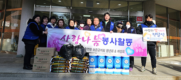 지난 1월 30일 한국자유총연맹여성회(회장 이정례), 한국자유총연맹청년회 보은군지회(지회장 서동현) 회원들과 행복나눔 문화예술인협회(대표 송철재) 회원들은 인우원(원장 정명선)을 방문해 색소폰, 장구, 노래 등으로 어르신들께 즐거움을 드렸다. 이들은 새해를 맞아 찰밥과 만두국을 대접하고 쌀과 휴지, 생필품 등도 후원했다. 이에 정명선 원장은 이들에게 감사의 말을 건넸다고 인우원은 전했다.
