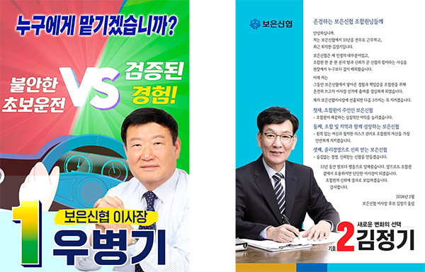 2월 27일 보은문화예술회관에서 실시되는 보은신협 이사장 선거가 막바지에 접어들면서 두 후보가 막판 스퍼트에 나섰다. 보은신협 이사장 선거는 지난 14일 공식 선거가 시작된 이후 종점을 향해가고 있다.